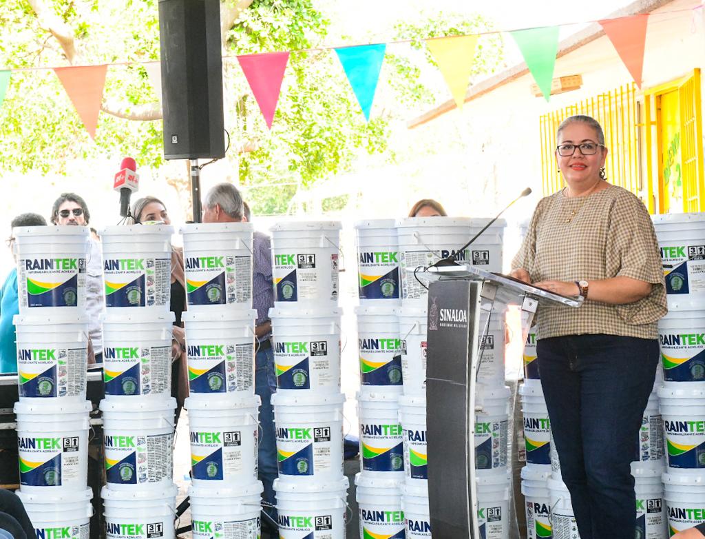 Acompañada por la presidenta municipal de Navolato, Margoth Urrea Pérez, así como de las Subsecretarias Ana Alicia Cervantes, de Educación Básica, y Catalina Esparza, de Planeación Educativa; Domínguez Nava indicó que el año pasado se apoyó a una cantidad similar de escuelas, pues se pretende ir abatiendo el rezago en el mantenimiento de las escuelas, que debido al clima en Sinaloa, requieren impermeabilización constante.