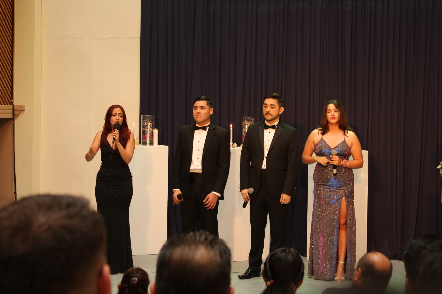 La presentación marcó el debut escénico de las cantantes Daniela Cortés y Rode Ríos, jóvenes con destacada participación en solos y ensambles en esta grata velada acompañada por arreglos florales y velas como elementos escenográficos.