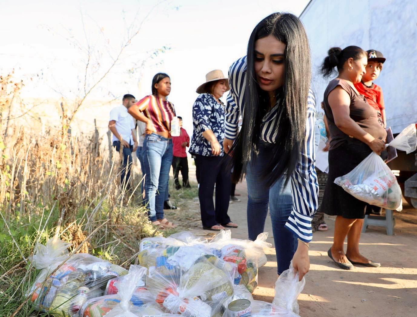 La secretaria de Bienestar y Desarrollo Sustentable de Sinaloa (SEBIDES), María Inés Pérez Corral, y la alcaldesa de Elota, Ana Karen Val Medina, arribaron a la localidad de Tayoltita para hacer entrega de despensas alimenticias, catres, colchonetas, cobijas y cloro.