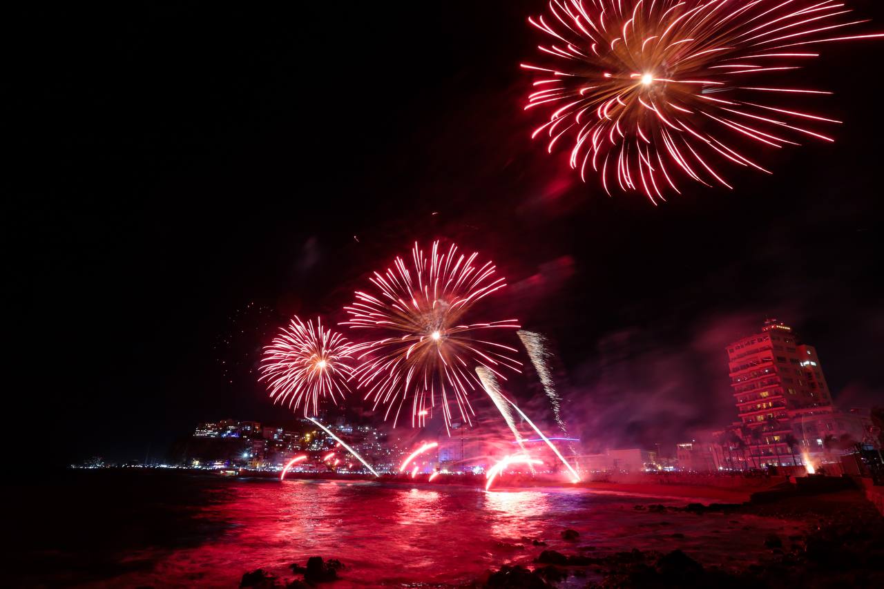 Los juegos pirotécnicos danzaron al ritmo de varios géneros como la música de la tambora sinaloense, la cumbia y la canción napolitana “O Sole mio” en la voz de Los Sinaloenses de Cuidado, José Manuel Chú, Adán Pérez, Armando Piña y el mazatleco Carlos Osuna.
