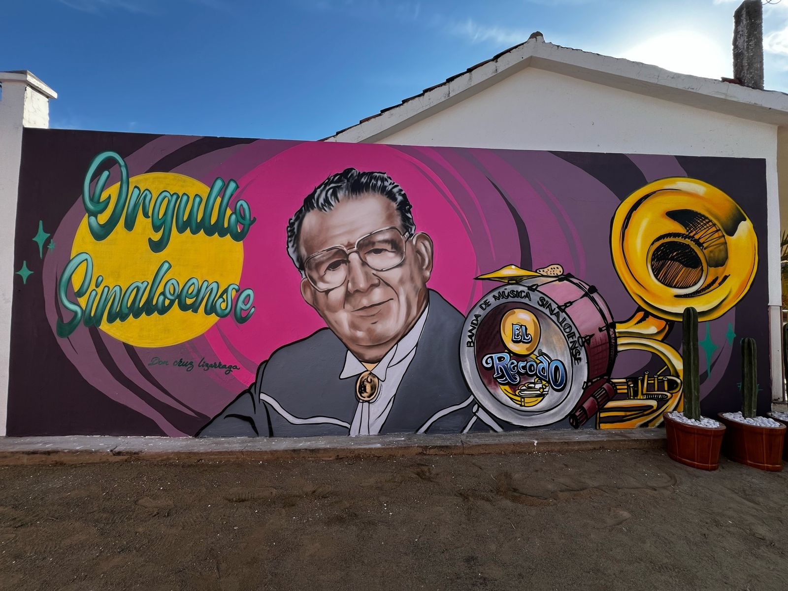 Con la ya famosa frase de Don Cruz Lizárraga: “No descansaré hasta que la música de banda se escuche por todos los rincones de la tierra”, Palacios Domínguez, en compañía de Doña Chuyita de Lizárraga, Alfonso “Poncho” Lizárraga y autoridades municipales inauguraron el callejón temático y dos murales en honor a Don Cruz Lizárraga, fundador de la Banda El Recodo.