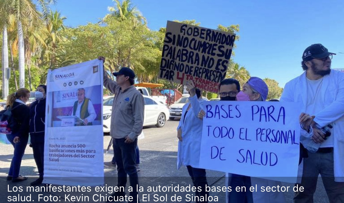 Culiacán.- Trabajadores del sector salud se manifiestan este 11 de marzo en el palacio de gobierno en la capital del estado, ante la posición señalada de quitar el recurso etiquetado para basificación de plazas del mismo.