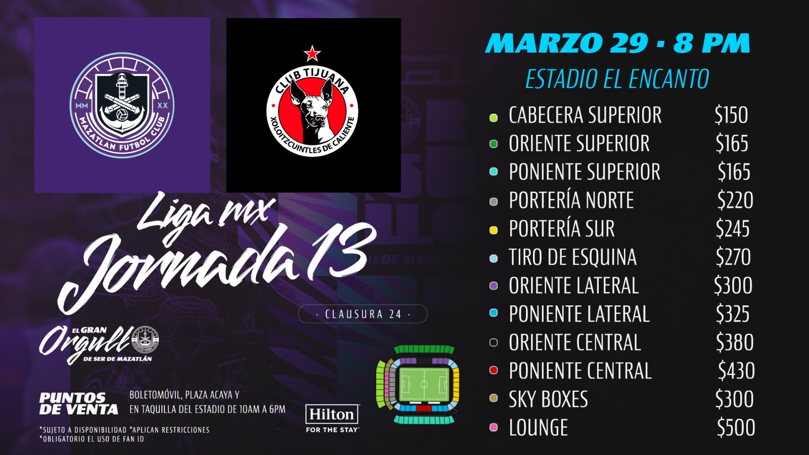 Como parte de la jornada 13 del torneo Clausura 2024 de la Liga MX, Mazatlán F.C. recibirá el próximo viernes 29 de marzo la visita de los Xolos de Tijuana.