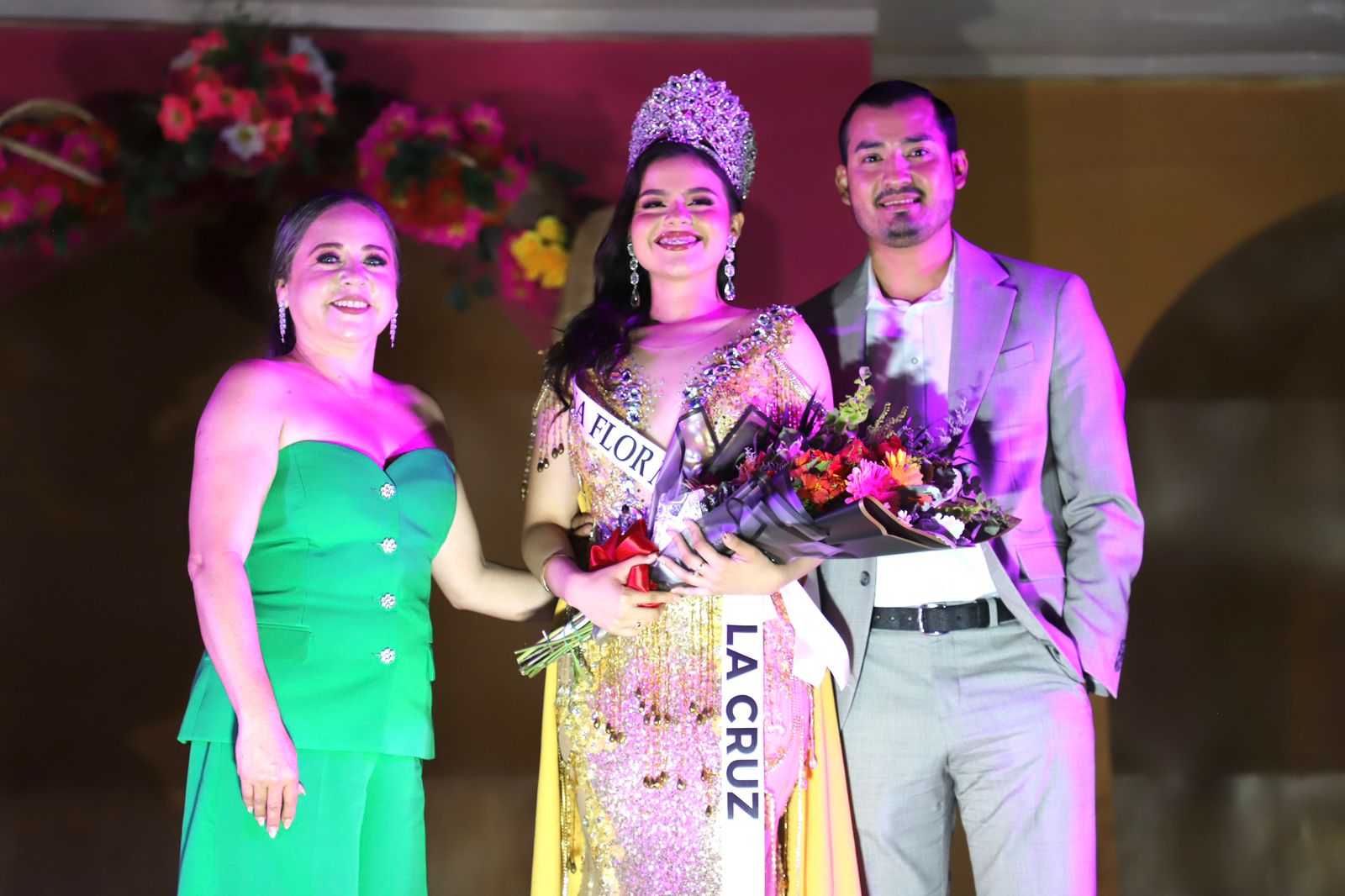 Fue la alcaldesa de Elota, Vanessa Torres López, y el director del Instituto Municipal de la Cultura, Jesús Cruz Angulo, quienes colocaron la corona y la banda a la nueva reina, seguido de una lluvia de coloridos fuegos artificiales que iluminaron el cielo, para dar la bienvenida a la nueva soberana.