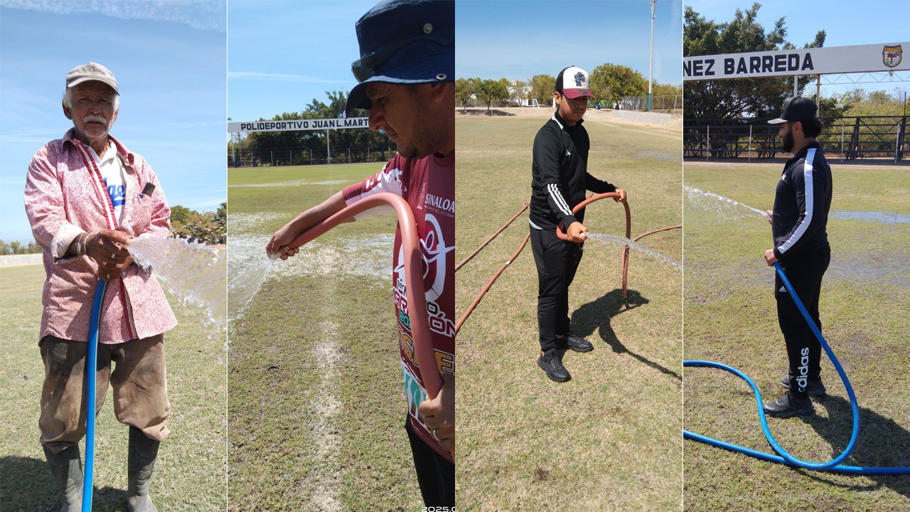 La Cruz, Elota, Sinaloa.- En un esfuerzo por mantener en óptimas condiciones las instalaciones deportivas del municipio, personal del Instituto Municipal del Deporte y la Cultura Física de Elota llevó a cabo labores de riego en el campo de fútbol del Polideportivo local. Esta actividad forma parte del proceso de restauración del césped, el cual fue recientemente fertilizado para mejorar su calidad y garantizar su adecuado uso.