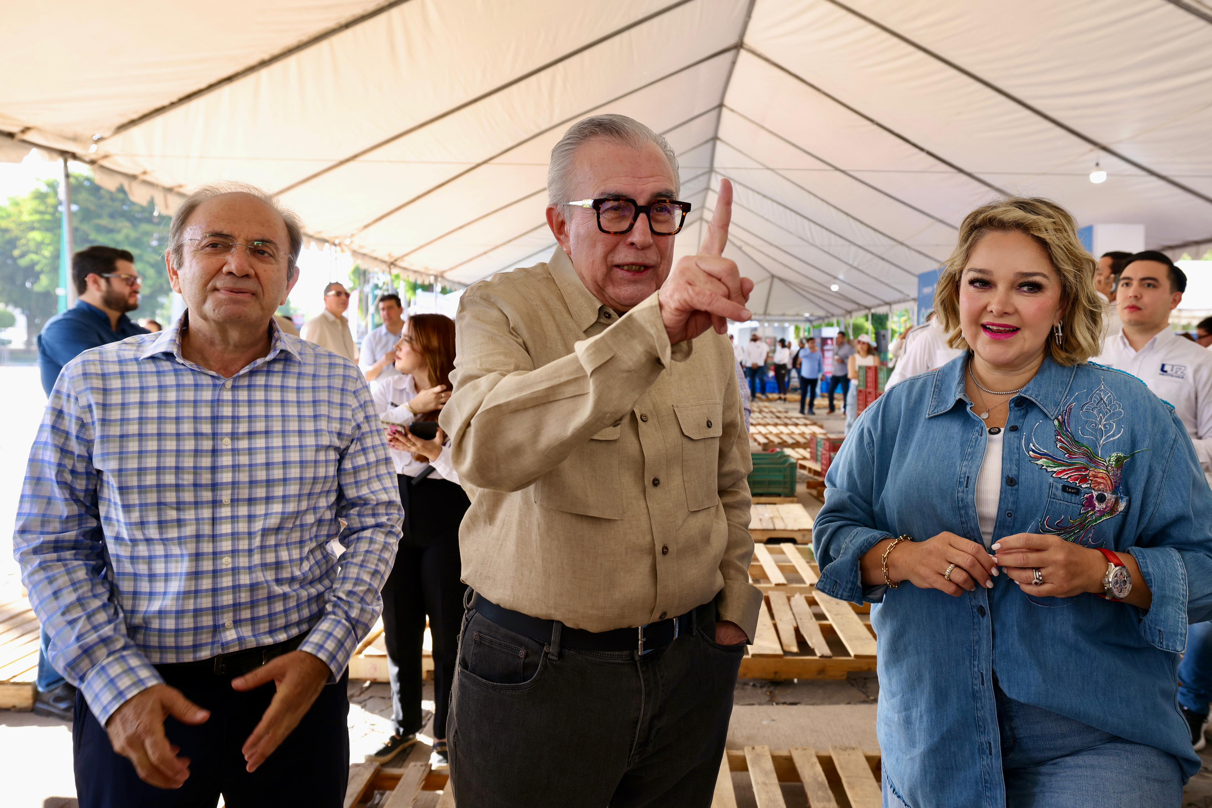Culiacán, Sin.- El Gobernador Rubén Rocha Moya acompañado de la Presidenta del Sistema DIF estatal, Eneyda Rocha realizó un recorrido por la explanada de gobierno, donde se está llevando a cabo la edición 2025 del Aquatón, ahí presenció y agradeció las primeras aportaciones, tanto de las dependencias estatales, personales y de las empresas que entregaron sus donativos del vital líquido mismo que será distribuido en cerca de 400 comunidades rurales y colonias del estado afectadas por la sequía y beneficiará a aproximadamente 80 mil ciudadanos.