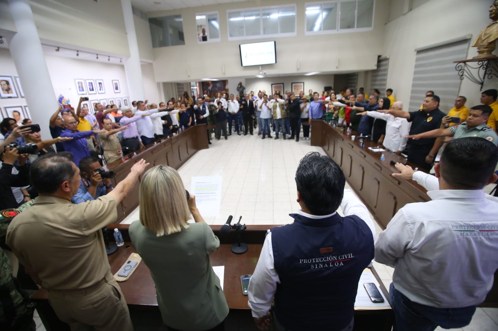 “El compromiso del Gobernador, el Doctor Rubén Rocha Moya, y la instrucción de él, es instalar todos los consejos municipales de aquí del estado de Sinaloa, pero no solamente eso, también estamos instalando 120 refugios temporales de primera respuesta con más de 50 mil personas aquí en el estado”, puntualizó.