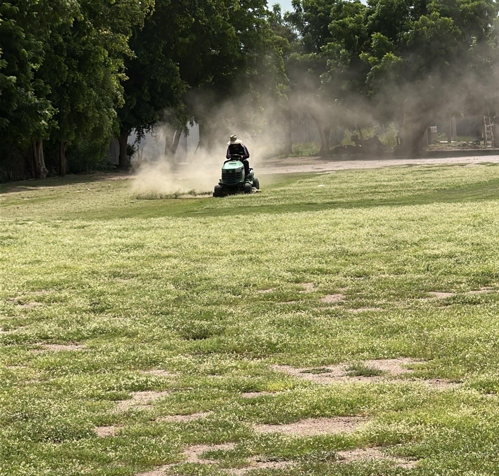 La Cruz, Elota.- Personal del Instituto Municipal del Deporte de Elota (IMDEE) llevó a cabo trabajos de poda de césped en el campo deportivo “El Polvorín”, ubicado en la colonia Palos Blancos.
