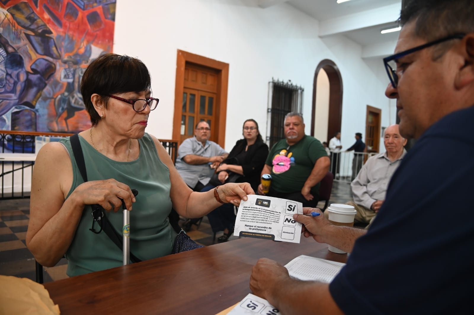 A las 8 de la mañana, personal jubilado acudió al punto de levantamiento de la Consulta para cumplir con responsabilidad y empatía con la institución que durante años fue su fuente de trabajo y que hasta la fecha les ha permitido gozar de un retiro digno, así lo manifestaron los primeros votantes María Isela Muñoz, el doctor Rafael Valdez Aguilar y Miriam Ríos Morgan tras depositar su boleta en las urnas instaladas en el Edificio Central, en la Unidad Regional Centro.