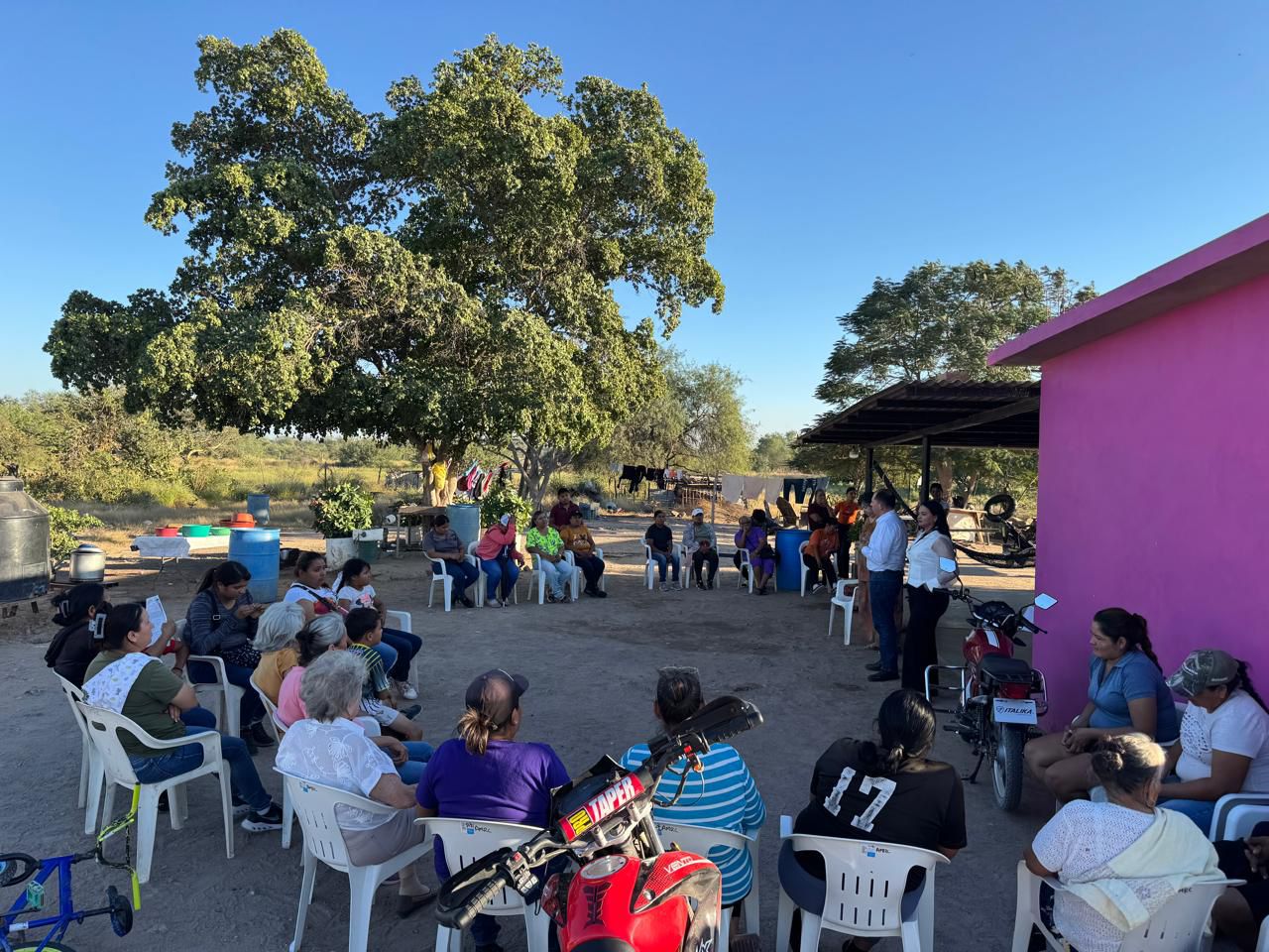 El Fuerte, Sin.-El presidente del Partido Sinaloense, Robespierre Lizárraga Otero, acompañado por el secretario de Organización, Samuel Soto Piña, y la secretaria de Asuntos Indígenas, María del Rosario Trasviña Bacasegua, sostuvo un encuentro con vecinas y vecinos del Ejido La Palma, en la sindicatura de Charay, municipio de El Fuerte.