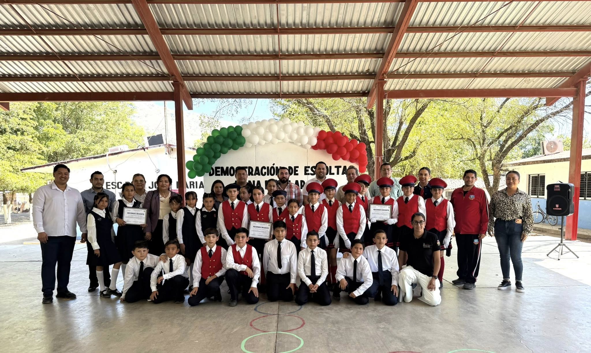 Cosalá, Sinaloa.- El H. Ayuntamiento participó en la Demostración de Escoltas de la Zona Escolar 005 de nivel primaria, evento que destacó la formación cívica y el fortalecimiento de los valores patrios entre la niñez del municipio.