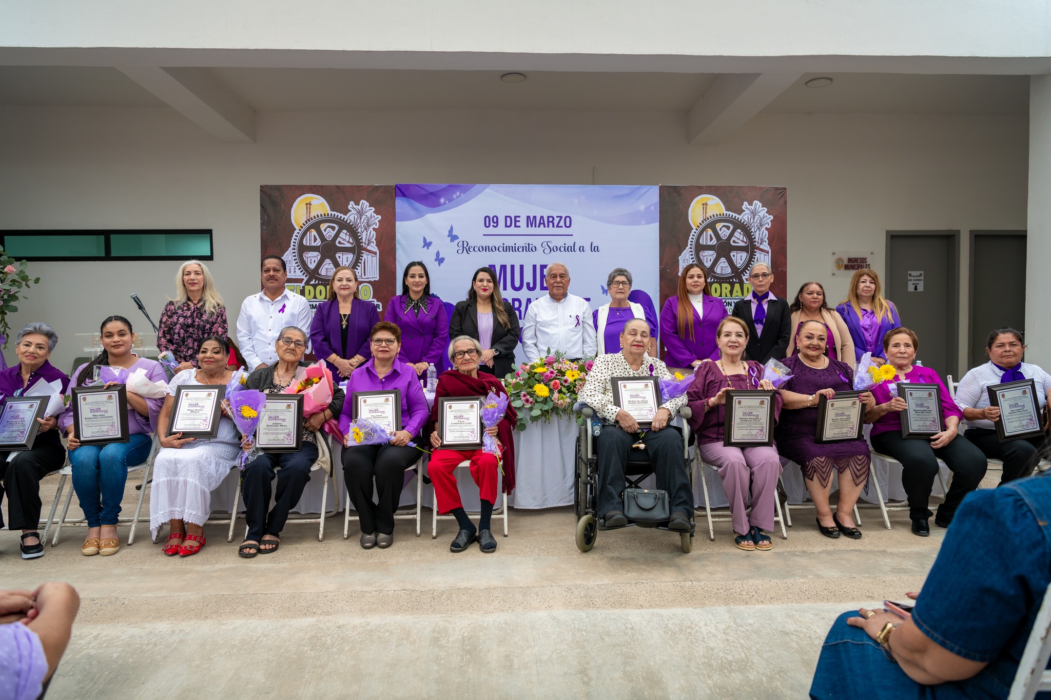Durante la ceremonia se entregaron reconocimientos a mujeres cuya historia de esfuerzo, liderazgo y compromiso representa un ejemplo para la comunidad. Entre las homenajeadas se encuentran Melisa Esquivel Ledezma, Martha Beatriz Rojo Beltrán, Josefa Sánchez Meza, María de Jesús Núñez Aguirre, María Dolores Ayala Olmeda, Yolanda León Hernández, Rosa María Meras, Norma Marisela Zambada Félix, María de Jesús López Olguín, Félix Carrasco León, Secundina Gómez Palacio, Irma Garmendia Bazúa, María Alicia Ponce Sicarios y Sabas Irma Castillo Camacho.
