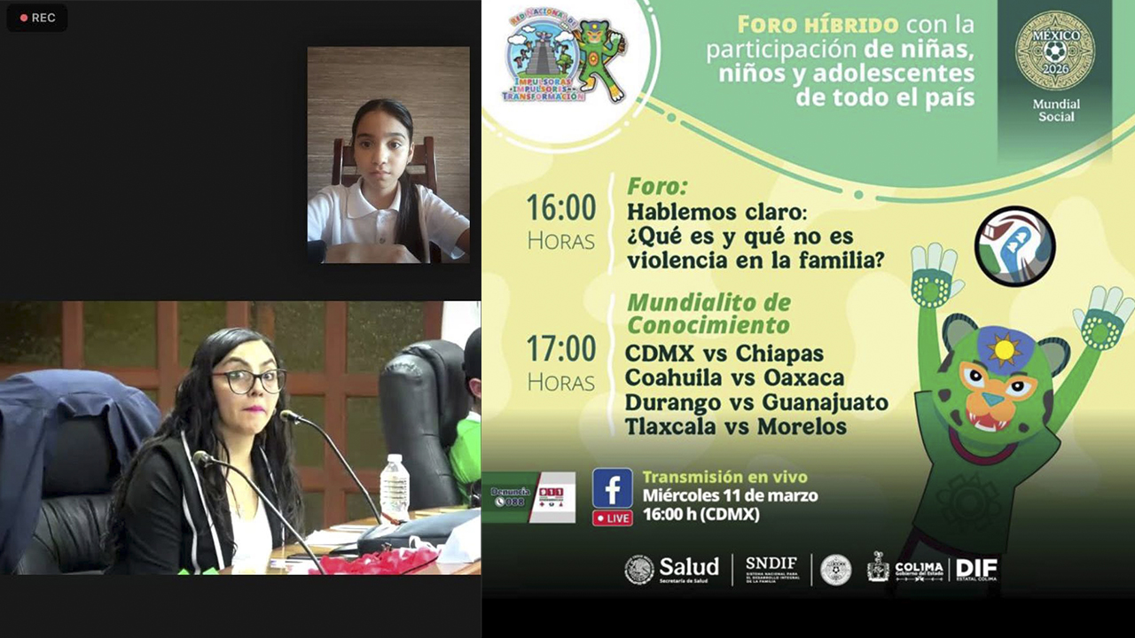 La Cruz, Elota, Sinaloa.- La Impulsora de la Transformación, Alissa Monserrat Ibarra, inició su participación en un foro híbrido donde niñas, niños y adolescentes de distintas partes del país dialogan sobre temas relacionados con sus derechos y bienestar.