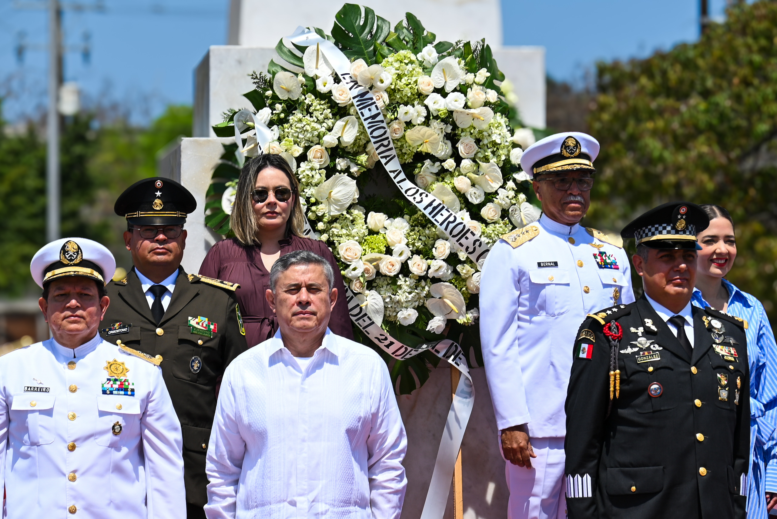 Mazatlán, Sin.- En una solemne ceremonia realizada en el Monumento a los Niños Héroes, el Almirante Juan José Bernal Méndez, Comandante de la Cuarta Región Naval, encabezó el acto conmemorativo al CXII Aniversario de la Gesta Heroica del Puerto de Veracruz.