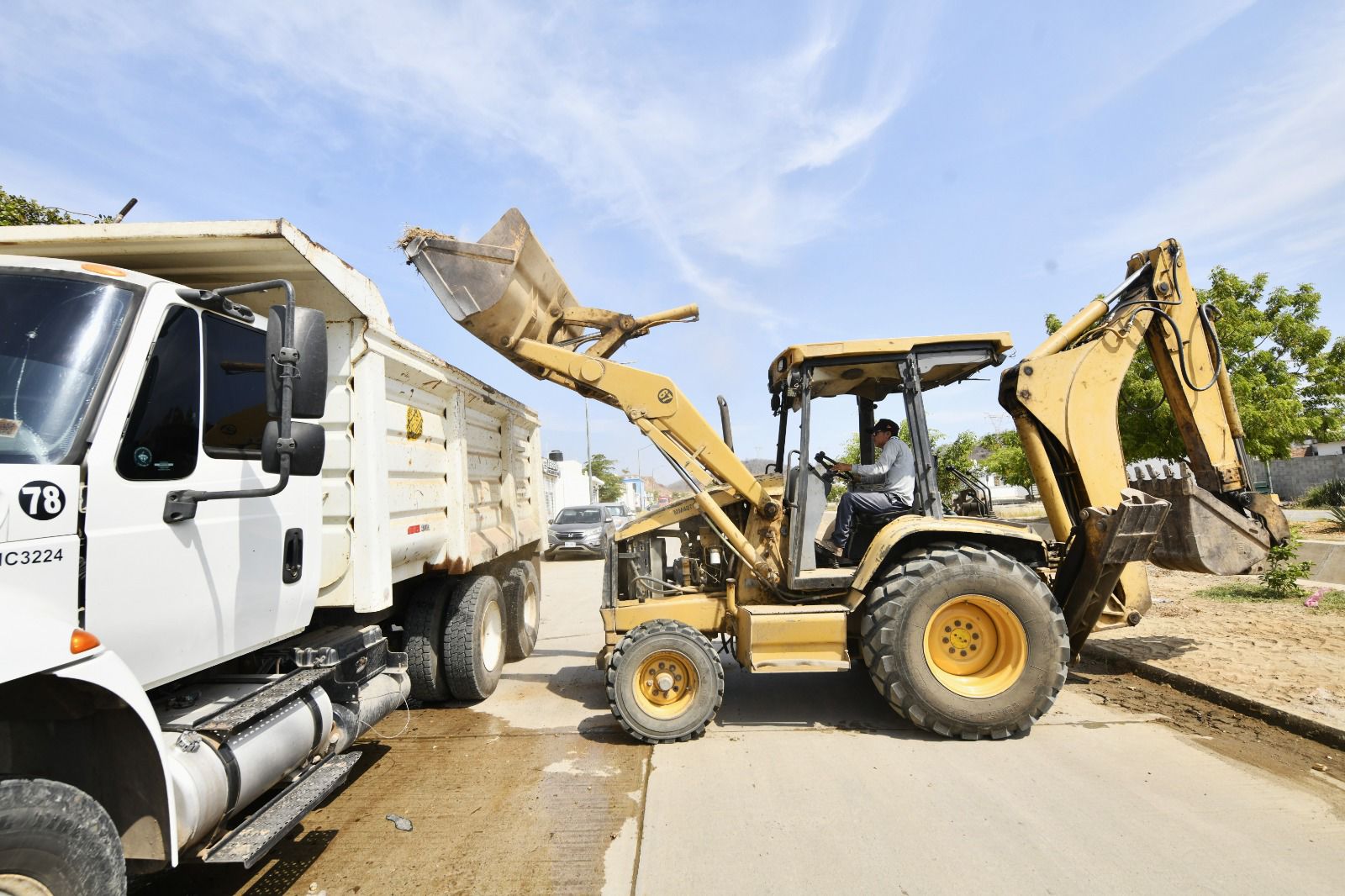 Mazatlán, Sin.- La Presidenta Municipal, Estrella Palacios Domínguez, informó que durante esta semana se reforzaron los trabajos permanentes de desazolve y limpieza de canales pluviales en Mazatlán, como parte de las acciones preventivas ante la cercanía de la temporada de lluvias.