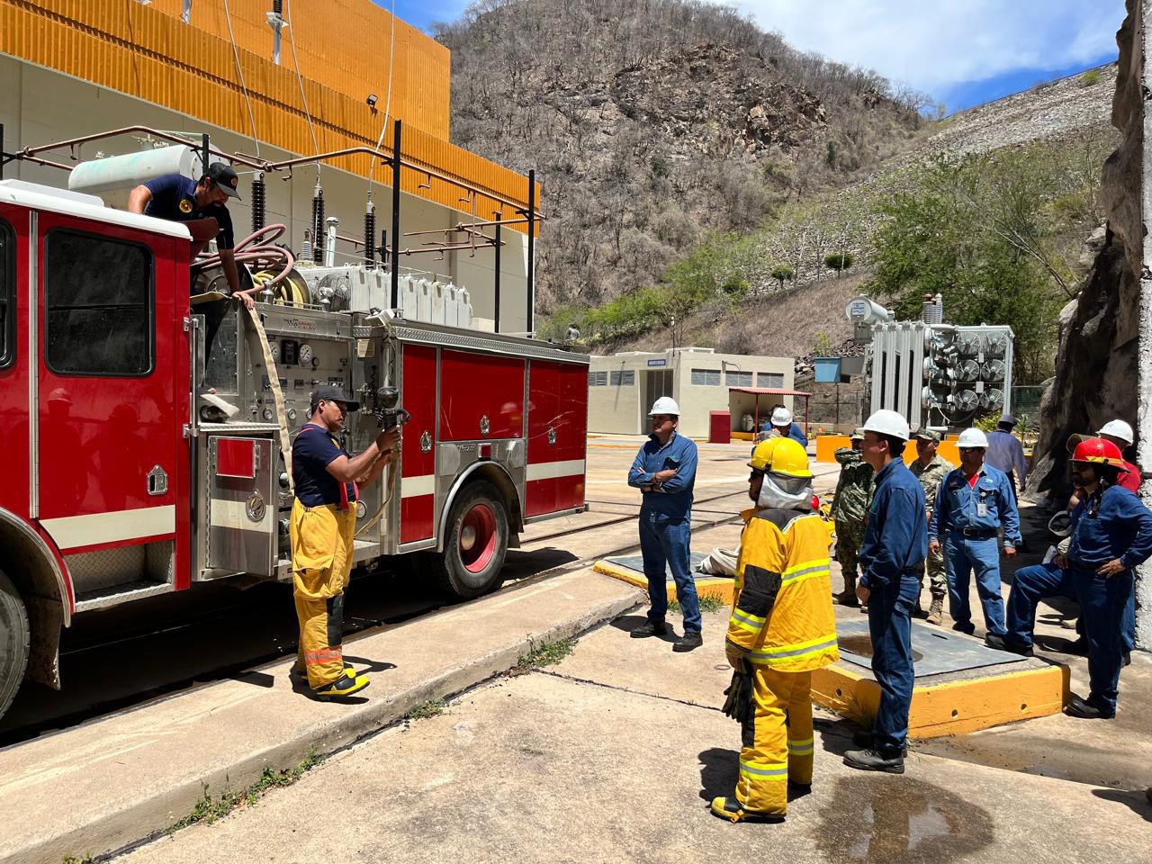 Cosalá, Sinaloa.- Personal de Protección Civil y Bomberos participó en una jornada de capacitación en la Central Hidroeléctrica “El Comedero”, donde realizaron prácticas especializadas para el manejo de sistemas contra incendios.